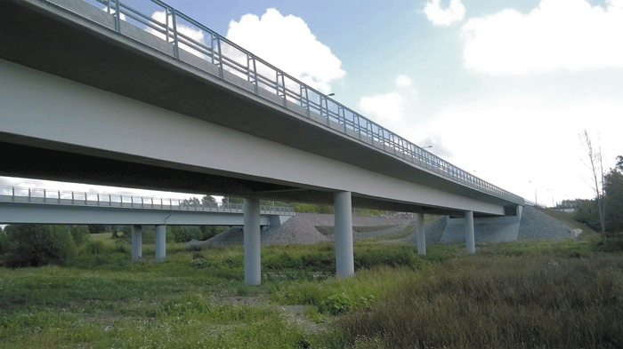 The River Vantaanjoki Bridge in Finland by Siltanylund Oy and Destia Oy was chosen as the best Cast in Place Concrete project. The project included design and construction of a new road, bridge structures crossing the river Vantaanjoki, pile slabs, underpass and an associated trough. In addition to cast in place structures and reinforcement, the project parties modelled the roads and earthworks and utilized BIM in checking and approval process and on site.